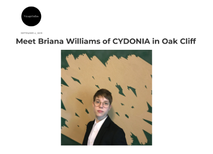 CYDONIA was one of the first galleries in the North Texas region to have internationally-focused programming that introduced the emerging, primary market to the Dallas-Fort Worth Metropolitan Area. CYDONIA was the first gallery in the region to bring programming to fairs in Berlin and Toronto.